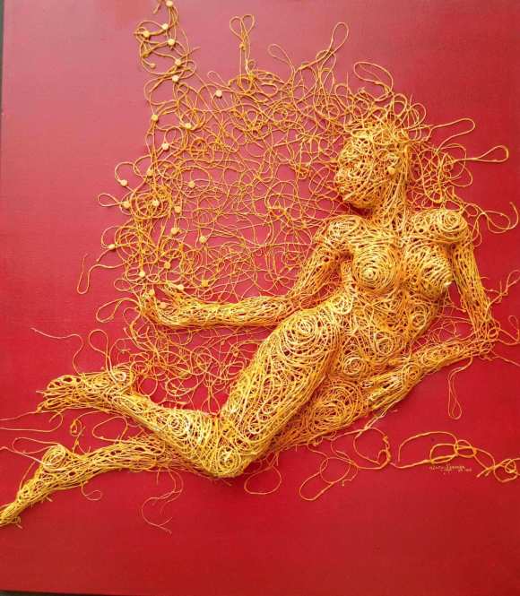 Dare Adenuga Makes Art With Threads, Ropes, Fabrics, Newsprints and Acrylic