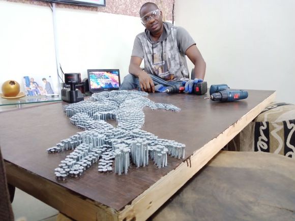 Segun Akano uses screws to make art. One thing about Segun is that he studied Analytical Chemistry at university. I wonder if he ever knew he would make art while at school. I forgot to ask him this.
